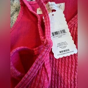 NWT 🩷 Very Soft waffle-knit sleeveless jumpsuit in bright pink from Simply Southern. Features adjustable straps and large front pockets for everyday convenience. Lightweight and comfortable for casual wear. Pink color adds a bold pop to any outfit. Size Large , Approx . 22” across the chest , the inseam is 25” and the leg hem is approx 14.5”