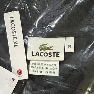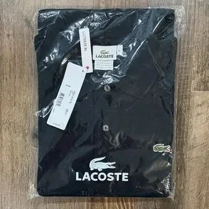 Timeless Lacoste polo in black. Breathable piqué cotton fabric. Button placket and ribbed collar. Signature crocodile logo at chest. Clean, versatile look for daily wear.