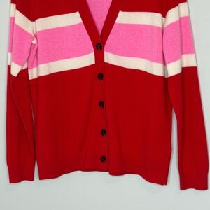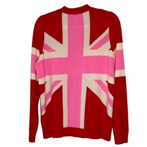 Boden Marianne Red Pink Union Jack 100% Cashmere V-Neck Cardigan Sweater Medium