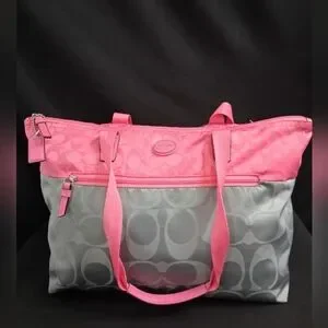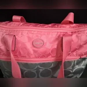 3 Peice Coach Signature Nylon Pink & Gray Getaway Weekender Tote/Duffle Bag