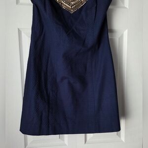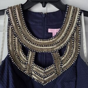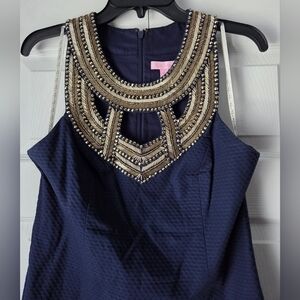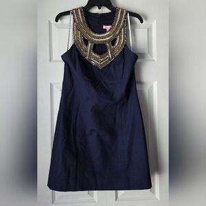 Lilly Pulitzer Carlton Shift Navy Dress with Embellished Neckline Size 6