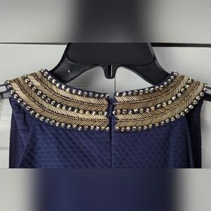 Lilly Pulitzer Navy Shift Dress with Embellished Statement Neckline