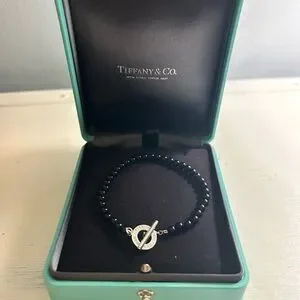 Tiffany & Co. bracelet with polished black onyx beads. Features a signature silver toggle clasp. Clean, classic design for everyday wear. Timeless and versatile style. Can be perfectly worn on its own or added to your favourite bracelet stack!