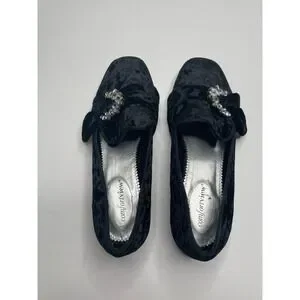 ComfortView 7.5 Black Crushed Velvet & Rhinestone Loafers