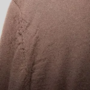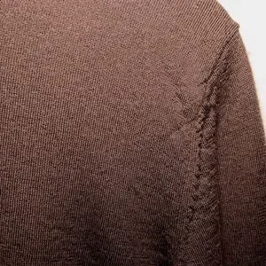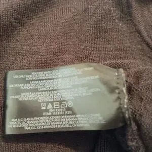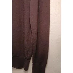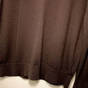 Fine-gauge knit sweater made from high-quality Merino Wool. Perfect for layering in fall and winter. Dark Brown/Espresso (appears nearly black in some light) Size: L (Large) Material (Body/Collar): 100% Merino Wool Material (Cuffs/Bottom): 78% Merino Wool, 22% Nylon (for shape retention) pit to pit 22in, length 27in, sleeves 26in.
