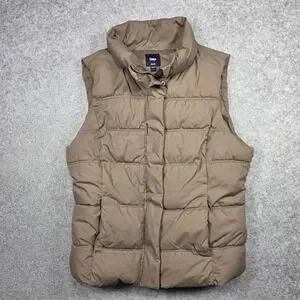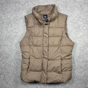 Gap Vest Women L Brown Puffer Zip Up Solid
