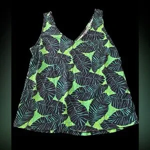 Lilly Pulitzer Under the Palms Gigi Tank Top Navy Lime Tropical Woman SZ XL EUC