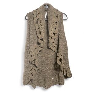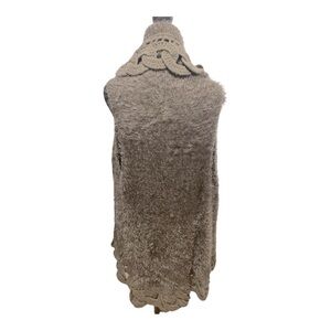 Mono Reno Knitwear Taupe Cable Knit Fuzzy Open Front Vest Boho Style