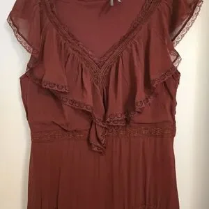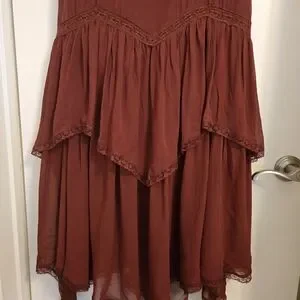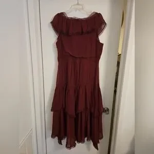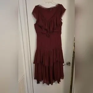 Anthropologie Boho Tiered Ruffle Midi Dress Wine Red Lace