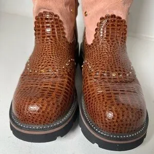 Ariat Fatbaby Boots Women’s 8B Brown Croc Embossed & Pink Leather Western Work