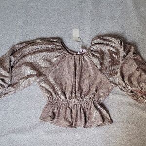 Shimmer in style with this elegant metallic brown top. Perfect for any occasion, this top adds a touch of glamour to your wardrobe.size xxs