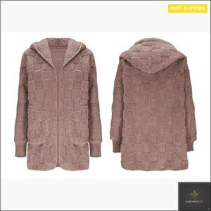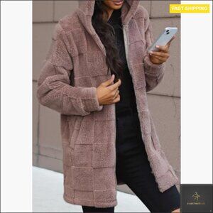Oversized Sherpa Hoodie Jacket Fuzzy Fleece Long Zip Up Winter Teddy Coat