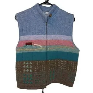 Vtg Susan Bristol Hand Knit 100% Shetland Wool Sweater Vest 1986 Women Large