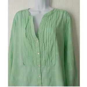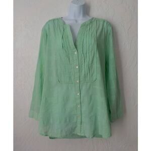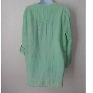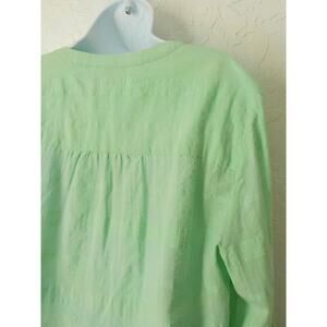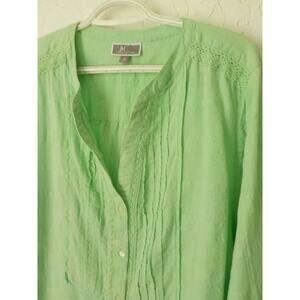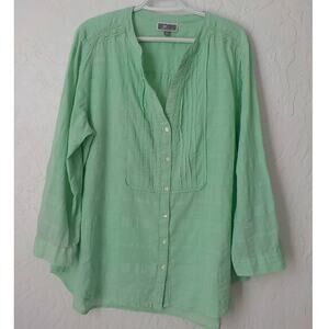 JM Collection Women XL Light Green Tunic Button Up Top Blouse 100% Cotton V-Neck