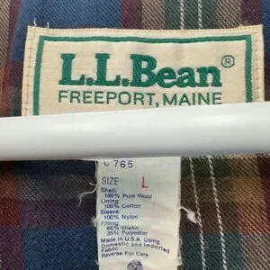 Vintage 80s LL Bean Plaid Lined Wool Bomber Jacket Coat Mens Size Large Red READ