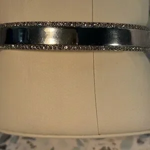Kate Spade Silver Tone Crystal Spade Bangle Bracelet Hinged Cuff