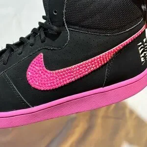 Bedazzled rhinestone Nike swooshes and Zebra print “NIKE” on the back. (2000s style)