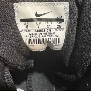 Some light scuffs on the black fabric around toes and tread on bottom is worn down.