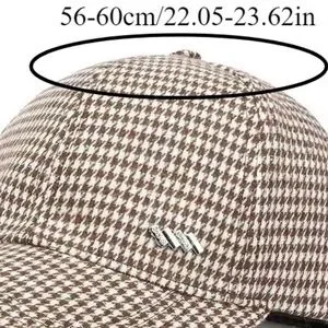 Stylish pink houndstooth baseball cap. Soft textured fabric with subtle pattern. Silver metal logo accent on front. Versatile accessory for casual looks.