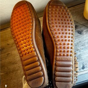 Fringe Suede Ankle Moccasin Boots - Brown Minnetonka Suede Womens size 8.5