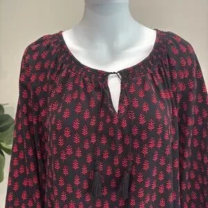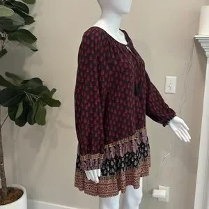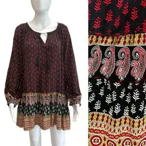 Beachlunchlounge Floral Paisley Mixed Print Peasant Tunic Size XL Long Sleeve