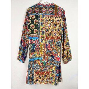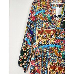 Zara Long Sleeve Boho Floral Patchwork Dress With Button Detail Size M NWT
