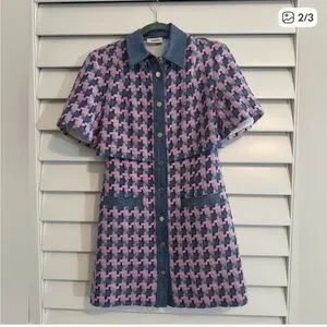 Beautiful pink and blue tweed Sandro dress with denim. Worn once. Looks brand new. Fabulous outfit to dress up or down.
