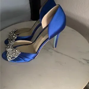 Elegant royal blue heels featuring a dazzling rhinestone bow. Perfect for special occasions.