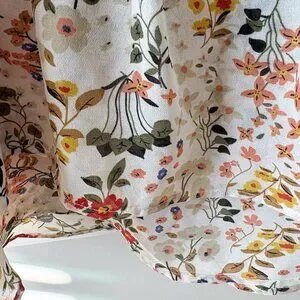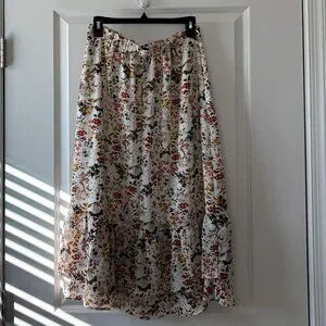 Accents: High Waist, Floral Print, Layered Ruffle, Elastic Back Waist, Hidden Side Zipper, Lightweight Chiffon Fabric, Flowy Skirt