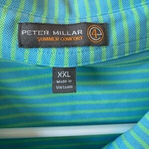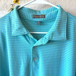 Peter Millar Summer Comfort striped polo shirt in excellent used condition. Made with moisture-wicking, breathable fabric—perfect for golf or casual wear. Subtle stripes add a polished, timeless look.