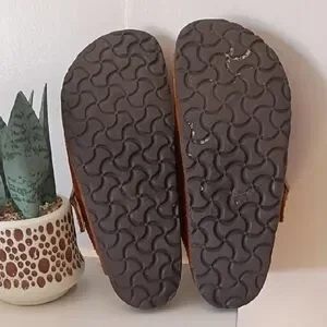 Footbed: The insole shows a visible "footprint" or darkening, especially around the toe and heel area and loss of interior lining