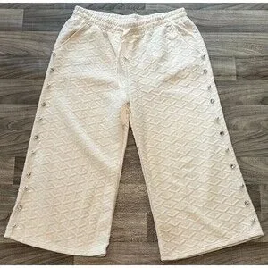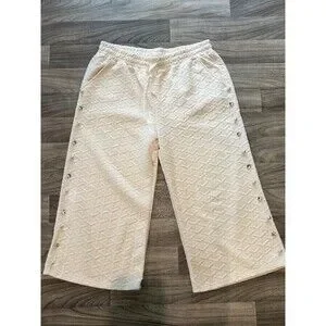 Simply Southern XXL Ivory Quilted Capri Pants Pearl Jewel Rhinestone Embellished
