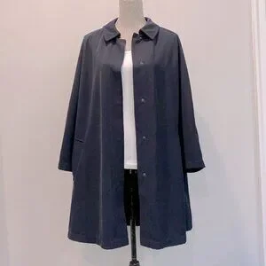 Hilary Radley Navy Blue Maxi Trench Coat Size 12 Snap Closure,