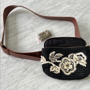 Anthropologie JULES Black and Cream Beaded Belted Bag Purse