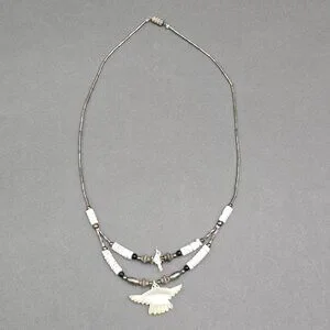Vintage Southwestern Bird Fetish Necklace 18" Hand Carved MOP Heishi Beads