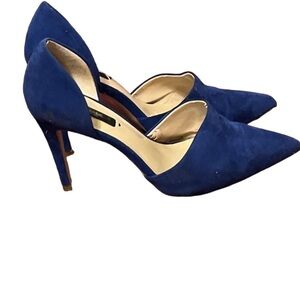 💙Zara Blue Suede Stiletto Heels Sz 37 US 7 Pointed Toe