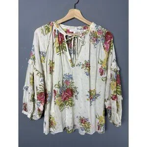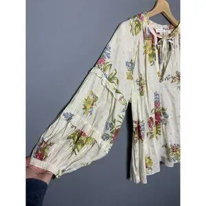 LOVE THE LABEL Womens L Floral Print Oversize Tunic Blouse Top Anthropologie