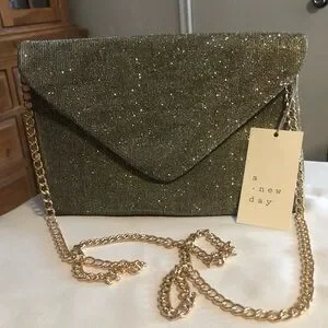 NWT a new day Glitter Envelope Crossbody with Gold Chain