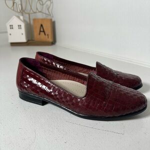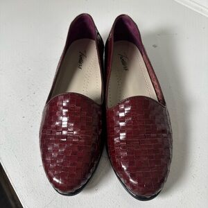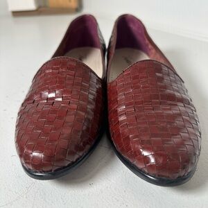Trotters Women’s 8.5W Burgundy Woven Leather Loafers Comfort Slip-On Flats