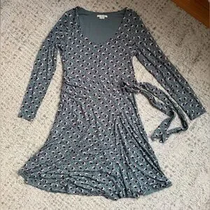 Boden Silvia Long Sleeve Faux Wrap Jersey Knit Dress - Floral Print - Size 12