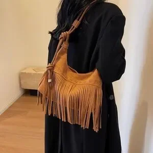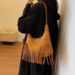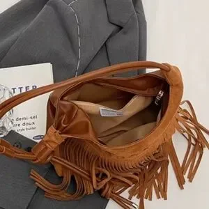 Elevate your style with this chic western fringed tan PU leather shoulder bag. Perfect for any occasion, it combines elegance with a touch of bohemian flair.