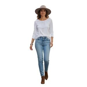 Fresh and versatile, these Chico’s Platinum Denim ankle jeans come in a soft light‑blue wash that pairs effortlessly with any look. Designed for comfort and style, they offer everyday stretch, a flattering straight fit, and a neutral tone that works year‑round. Perfect for casual days, business‑casual outfits, travel, or festival styling, they transition easily from polished to relaxed depending on your shoes and layers.