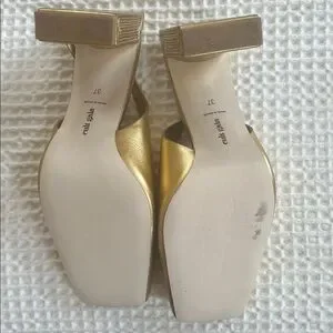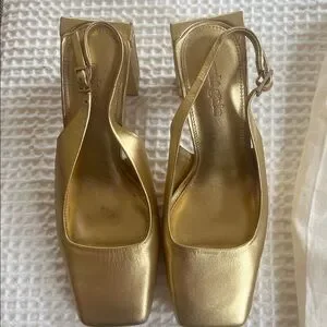cult gaia Metallic Gold Square-Toe Slingback Heels