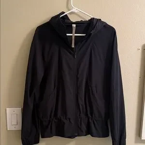 Stay stylish and comfortable with this sleek black hooded jacket. Perfect for any occasion.