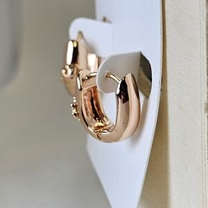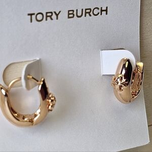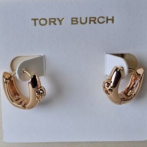 Tory Burch 18k Plated Rose Gold Icon Huggies Earrings New