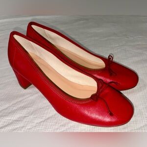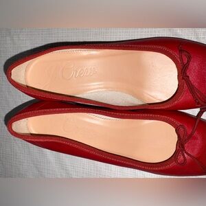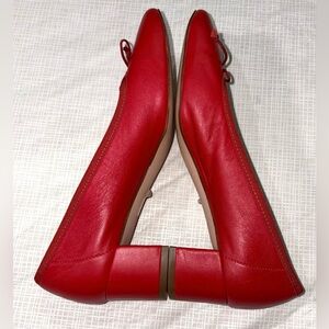J. Crew Sz 8.5 Red Leather Low 1 3/4” Heel Ballet Pumps with Bow