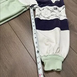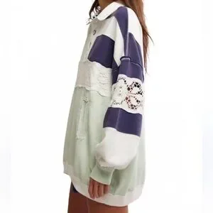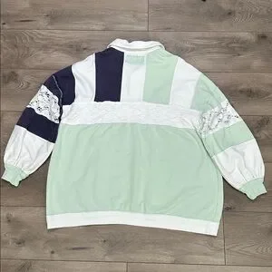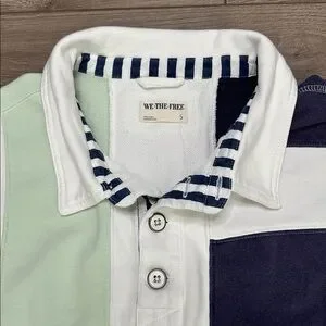 We The Free American Dream Polo Long Sleeve Sweatshirt Colorblock Green Blue Size Small