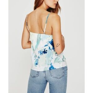 The Scarlet Cami for women features an AG exclusive watercolor print with soft blues and muted yellow hues.