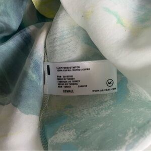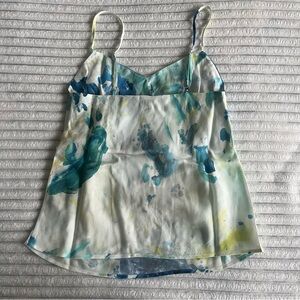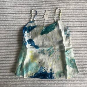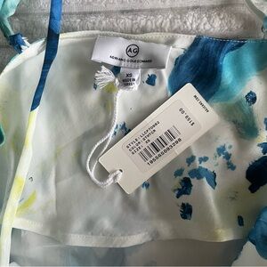 AG Adriano Goldschmied lightweight tank top. Called the Scarlet Cami in the Garden Paint Multicolor print. Adjustable spaghetti straps, lined around the upper chest. Smooth, non-stretchy material. New with tag and in the plastic bag it came in.