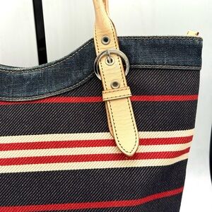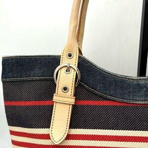Burberry Blue Label Denim Striped Tote w/ COA ✅ Y2K Vintage